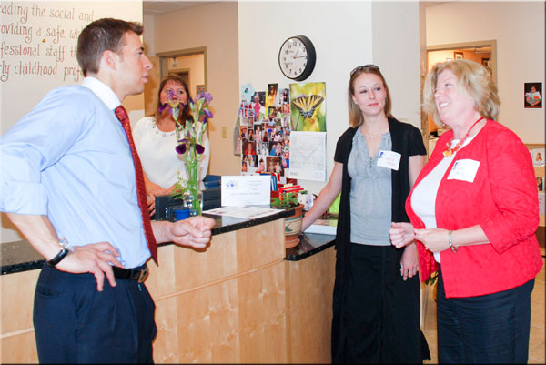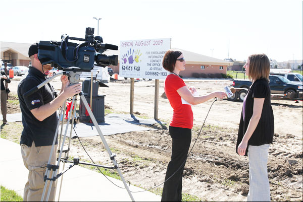 Illinois State treasurer, Alexi Giannoulias was in town on Wed. May 20 to speak on the topic of “What the Stimulus Package can do for your Business.” He spoke for the McLean County Chamber of Commerce and in his speech he cited Katie’s Kids Learning Center as a business that is benefiting form the Employ IL Program, a program in which the state deposits money at a financial institution so a borrower can get a lower interest rate. While in town, he toured our existing site at 1602 Glenbridge Road and our new site being built at 2003 Jacobssen in Normal.